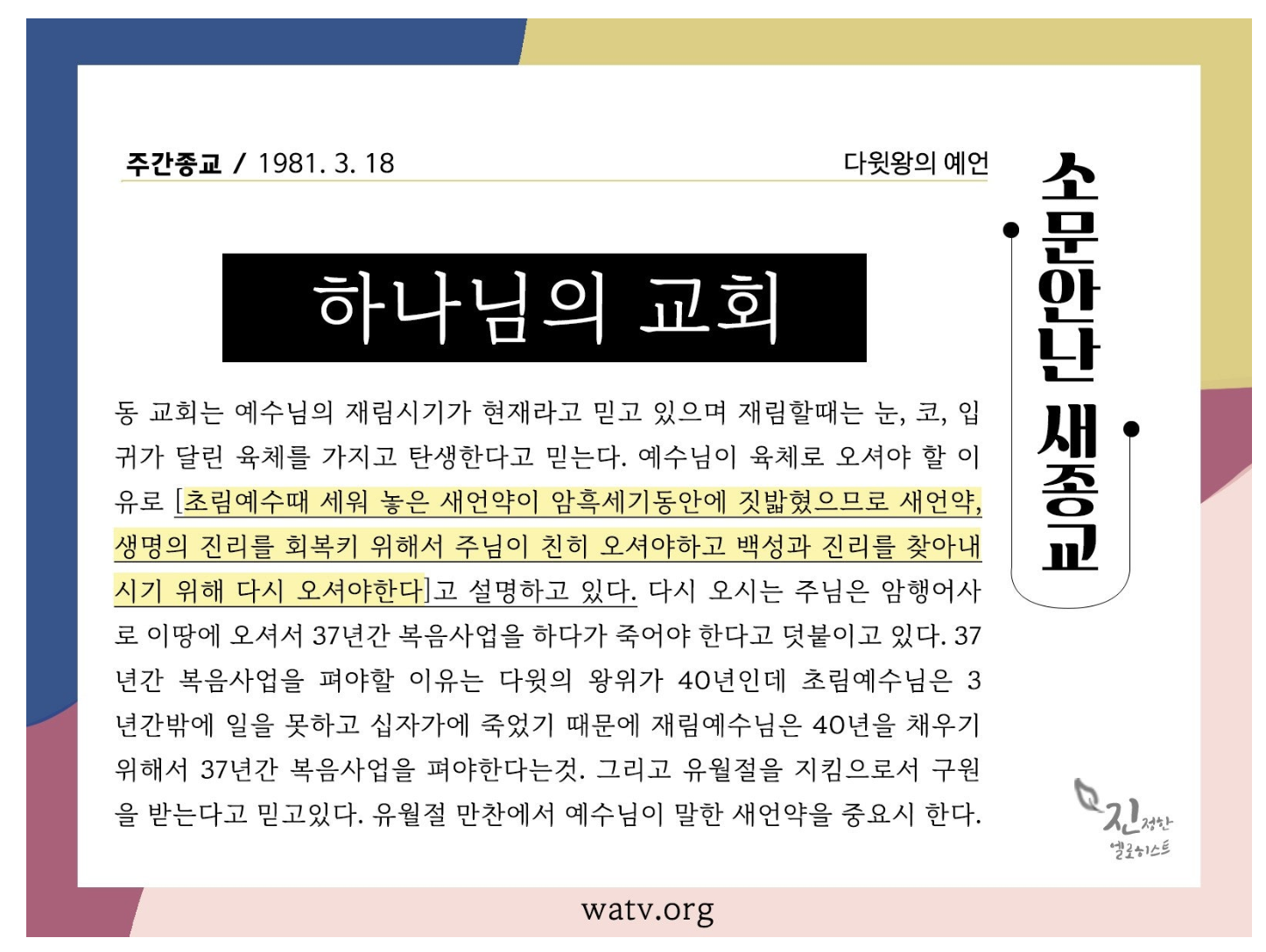 | 『하나님의교회』 안상홍님의 오심 (47) | 2026.01.19 |