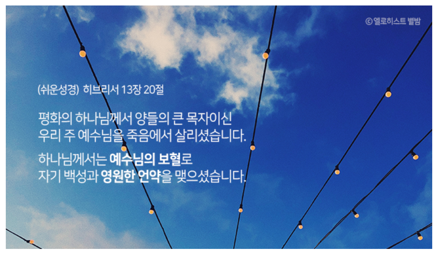 영원한 언약의 ‘피’라고 하였으니 영원한 언약에는 생명을 주는 예수님의 피가 반드시 있어야 한다. 다시 말하면 예수님께서 피로 세운 언약이 영원한 언약이다. 성경에서 예수님의 피로 세운 언약은 새 언약뿐이다.